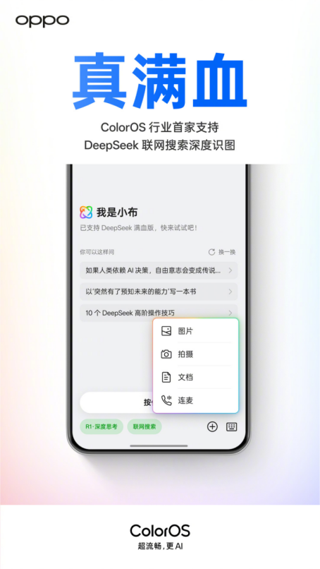 ColorOS行业首家支持DeepSeek联网识图 超50款机型支持