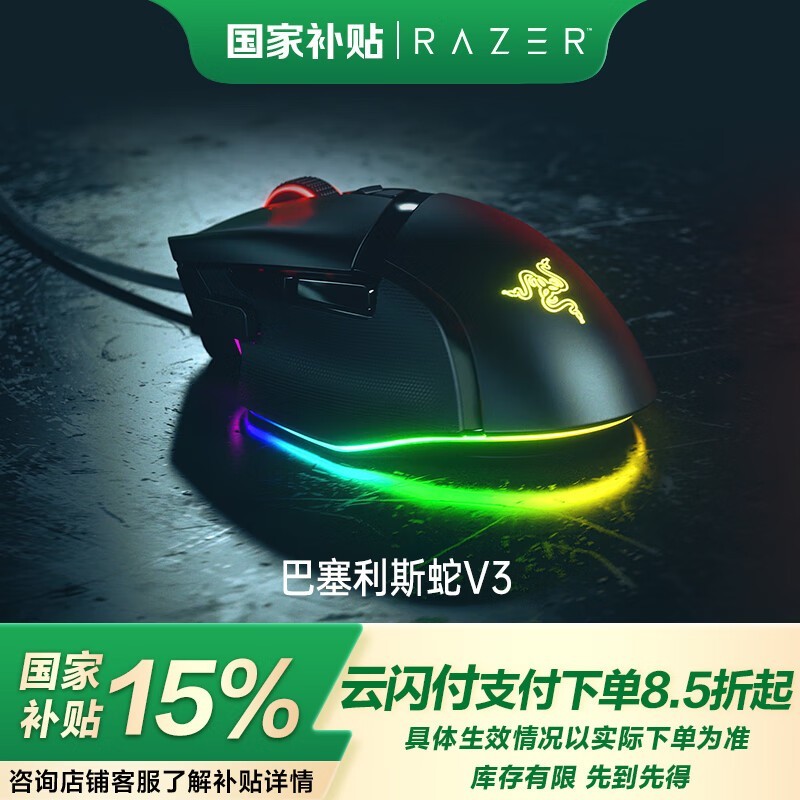 雷蛇巴塞利斯蛇V3有线鼠标黑色款超值优惠