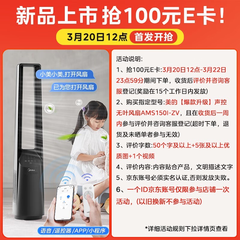 美的无叶风扇AMS150I-ZV母婴级轻音智能感温促销