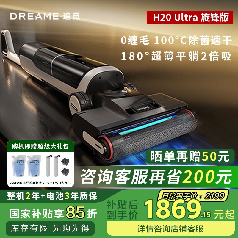 追觅H20 Ultra旋锋版洗地机京东促销低至1514元