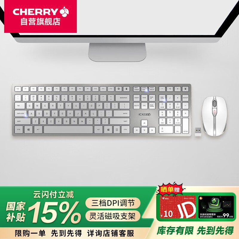CHERRY DW9100无线键鼠套装银色版双模连接剪刀脚结构