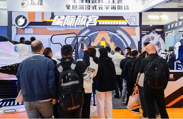 2025年3月19日,第41届中国(北京)国际游乐设施设备博览会(以下简称“北京游乐展”)上,广州市龙程电子有限公司(以下简称:龙程VR)携其最新力作——首款科幻主题大空间VR全感沉浸式元宇宙剧场“星际旅客”首次公开亮相,不仅引起了VR行业的广泛关注,更因其创新模式和巨大潜力,有望在文旅产业升级、促进消费以及响应国家科技创新政策方面发挥积极作用。