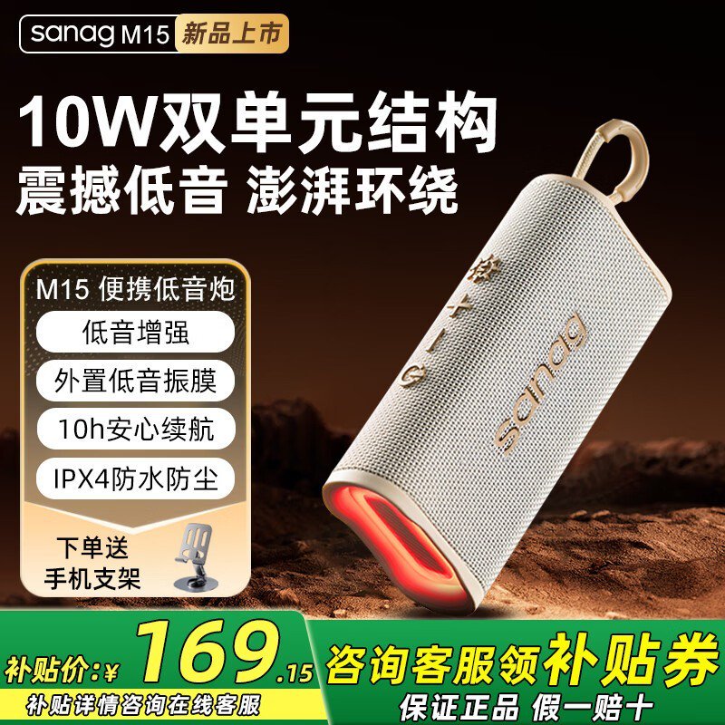 塞那M15蓝牙音箱户外低音炮防水便携音箱京东149元好价