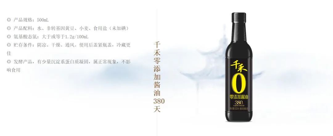 在公司官网上,千禾御藏本酿380天酱油产品,位居零添加酱油产品板块之首,另外还有280天、180天两款产品。该系列产品单瓶(500毫升)零售价在15至20元区间。