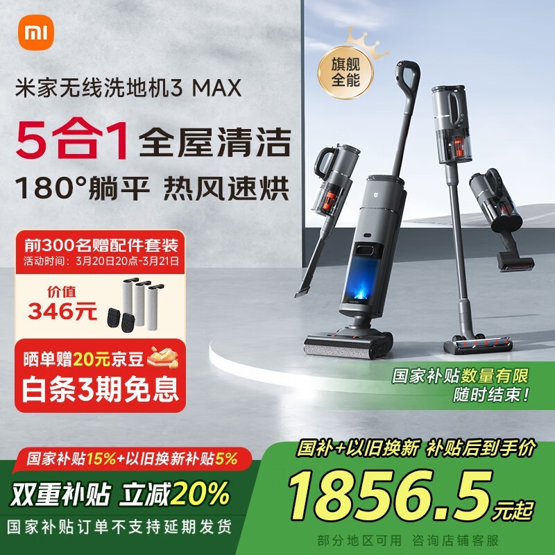 米家MIJIA无线洗地机3 Max京东优惠价低至1752元