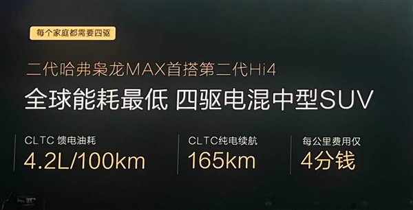 动力方面,新款枭龙MAX将全系标配由1.5L发动机组成的第二代Hi4插电混动四驱系统,其中发动机最大功率为85kW,最大扭矩140N·m,后桥电机150kW,系统综合功率238kW,综合扭矩595N·m,CLTC馈电油耗低至4.2L/100km。