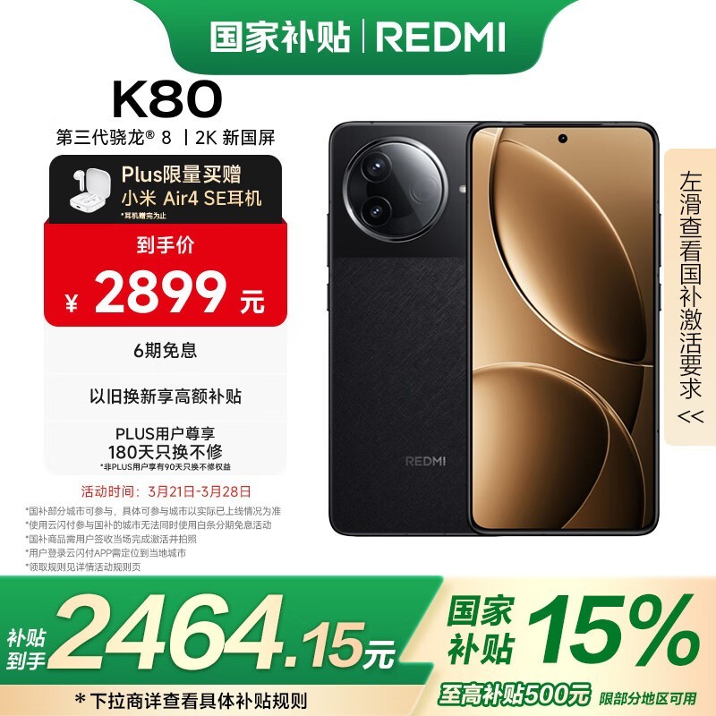 红米K80 5G手机京东特惠价2332元