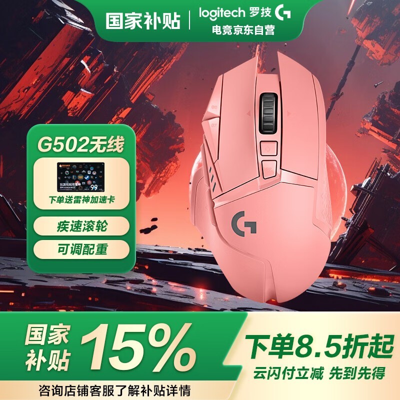 罗技G502蜜桃粉无线鼠标电竞好价324元