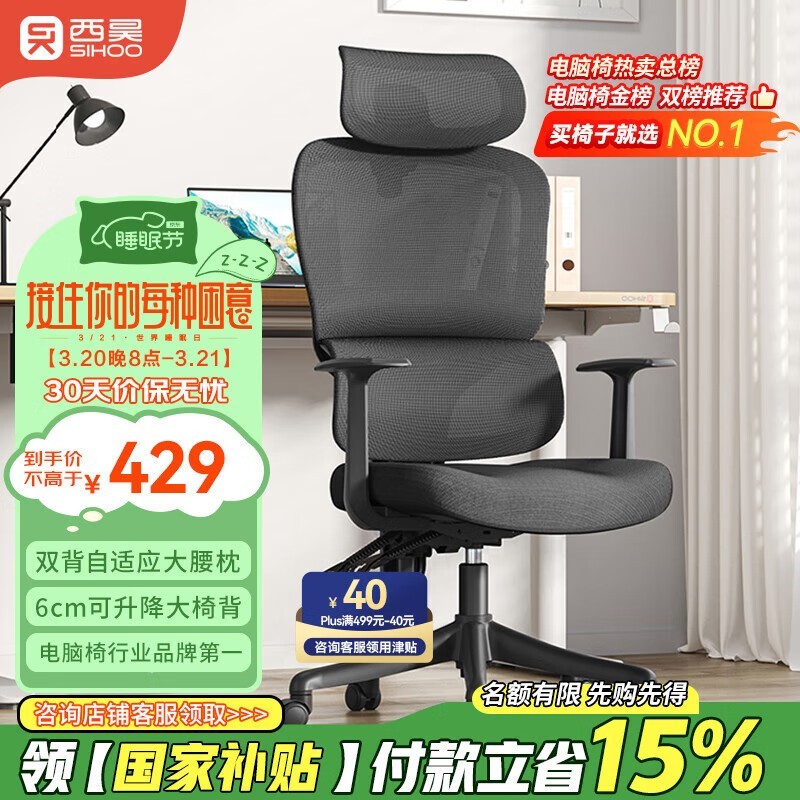 人体工学电脑椅西昊M56-101黑色固定扶手款舒适久坐不累