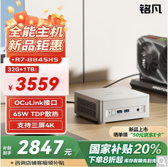 划重点!现在正值国补优惠大放送,购买铭凡指定迷你主机和拓展坞产品,就能享受超值折扣,直接将性价比拉满。这可是难得一遇的省钱机会,错过简直就是你的损失!别再犹豫了,赶紧入手!