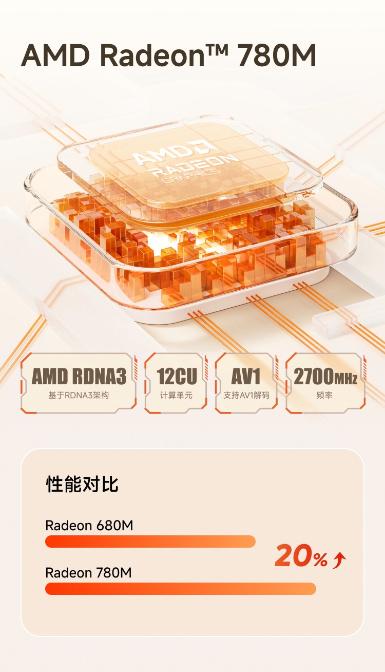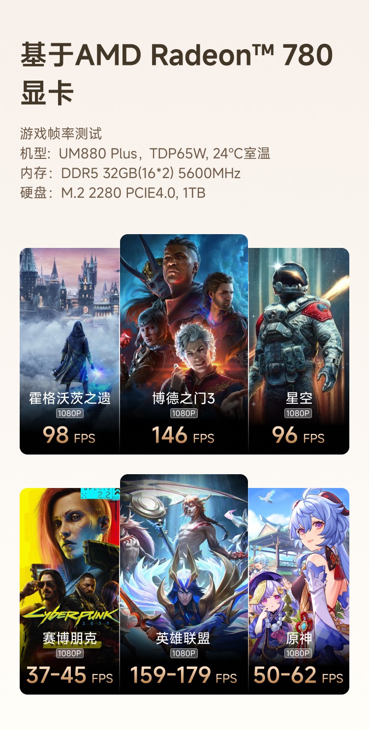 闲暇想玩游戏?UM880 Plus 也能满足你。强悍的CPU性能,搭配Radeon 780M核显,轻度设计和娱乐需求轻松拿下,游戏体验也不在话下。