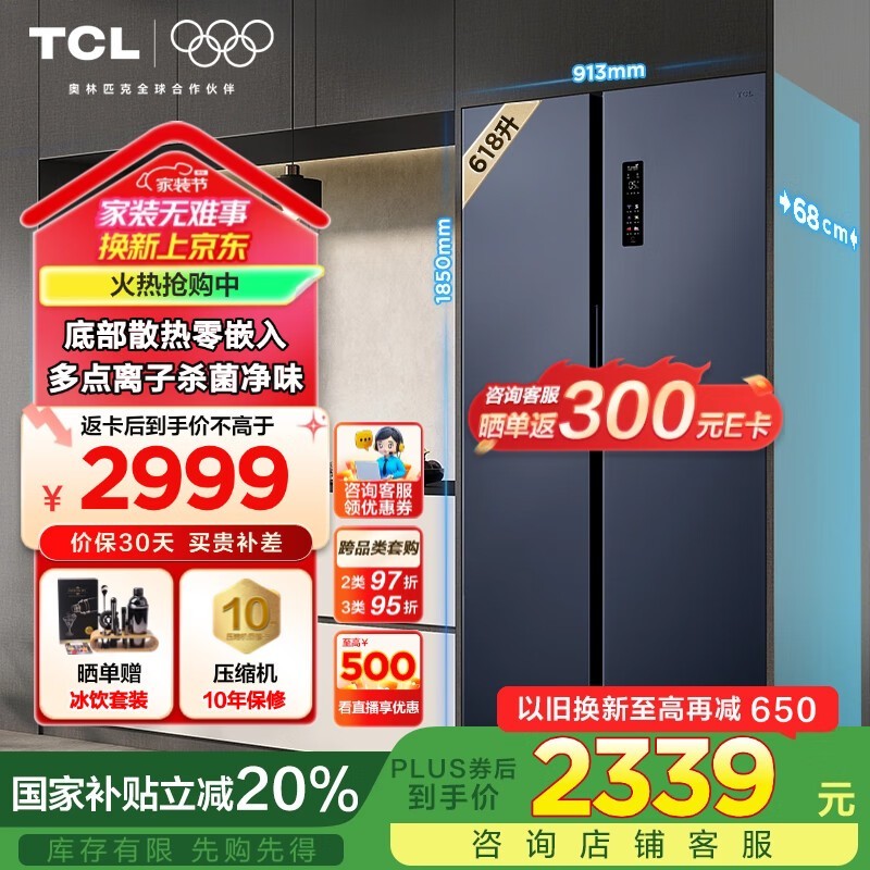 TCL超薄零嵌冰箱R618T9 - SQ超值优惠快来抢!