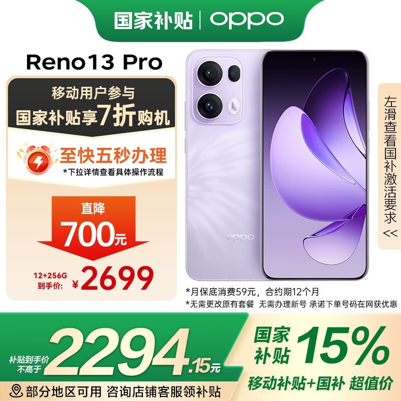 OPPO Reno13 Pro 12GB+256GB蝶蝶紫 5G手机 京东特惠到手2699元