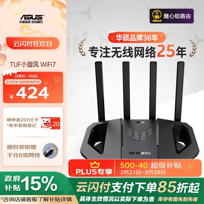 华硕ASUS TUF GAMING小旋风路由器超值优惠