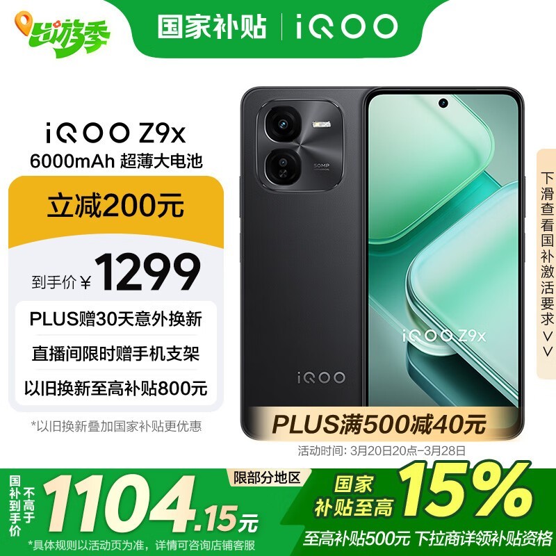 iQOO Z9x 5G曜夜黑版,1063元可入手
