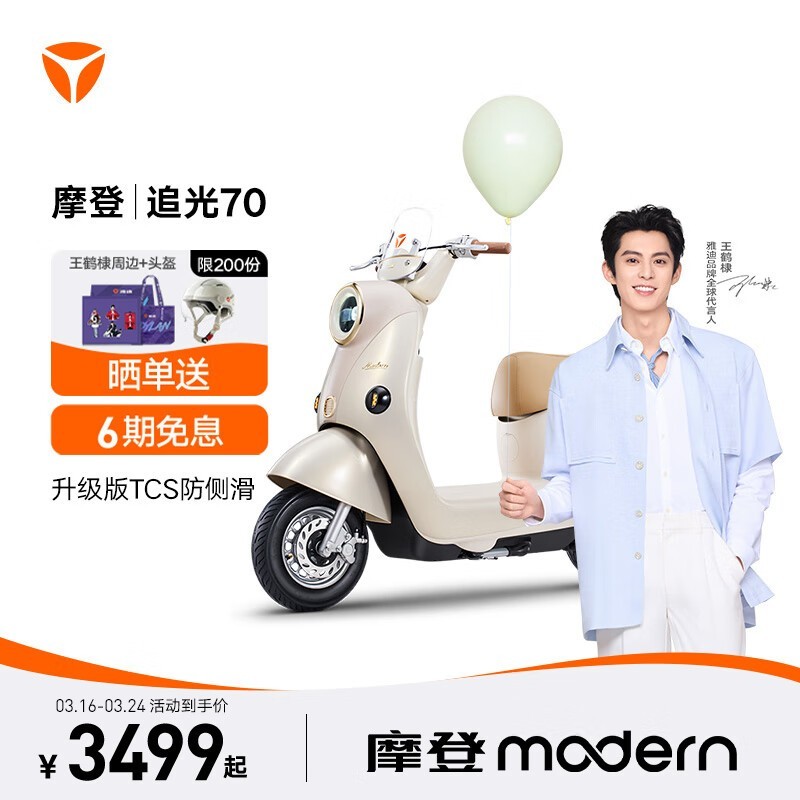 雅迪摩登追光70电动自行车仅3499元舒适便捷长续航
