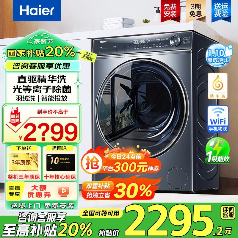 海尔云溪系列10kg直驱滚筒洗衣机超值价2295元