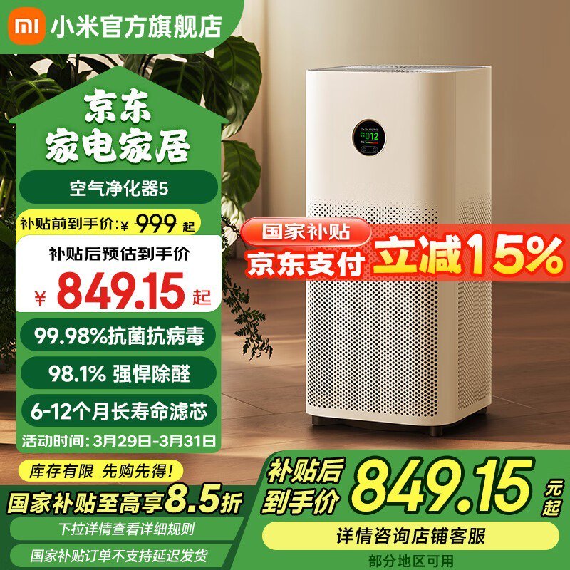 小米空气净化器5 AC-M25-SC仅764元包邮