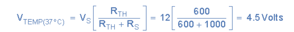 一个1kΩ的NTC热敏电阻,Beta系数为3950,与一个1kΩ的固定电阻串联连接在12伏电源上,用于测量10°C到100°C的温度范围。计算在37°C温度下热敏电阻上的电压降。