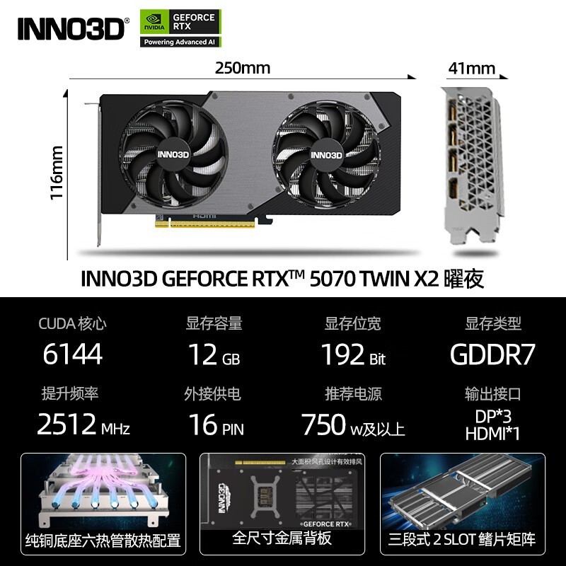 映众RTX5070曜夜12G显卡京东特惠4899元
