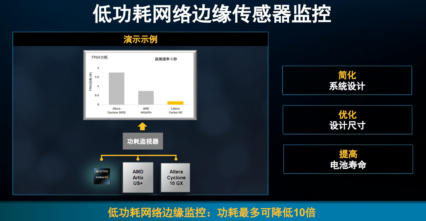 马达控制、机器人、汽车区域网关和网络边缘监控,是Certus-N2 FPGA的典型应用场景。它们的共同特点是对网络边缘人工智能、传感器与云端互连、以及弹性安全的需求日益增长,需要具备更高数据吞吐量、存储性能、快速闪存配置、增强时序收敛和并行处理能力的半导体器件。