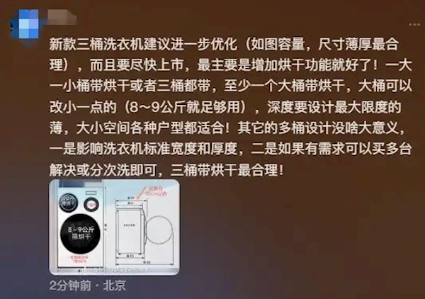 还有人针对海尔新推出的懒人洗衣机提出了修改建议;
