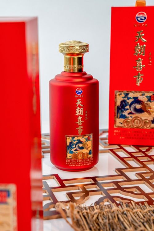 在酒类方面,天朝喜事酒产于贵州茅台镇,以红樱子糯高粱、小麦、水为原料,传承古典酱香酒酿造工艺,天然酿制而成。该酒酱香突出、醇厚绵柔、回味悠长、空杯留香持久,从生产到出厂历经数年,整个勾兑过程采用酒勾酒方式,品质卓越。