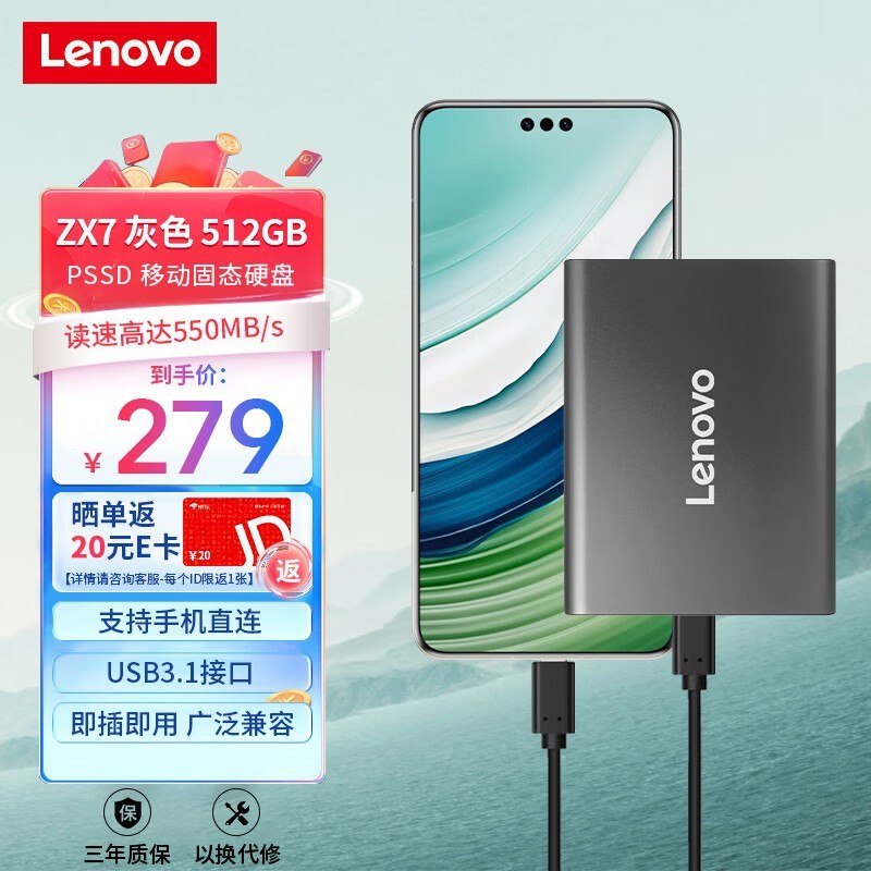 联想Lenovo 512GB移动固态硬盘京东特惠至237元