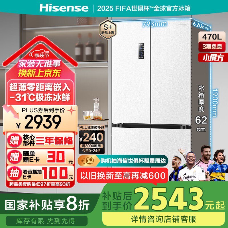海信Hisense食神冰箱470升十字双开门京东特惠到手2271元