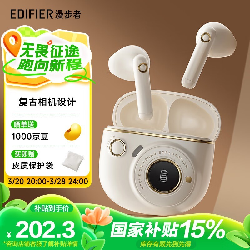 漫步者TO - U3蓝牙耳机白色款优惠价218元