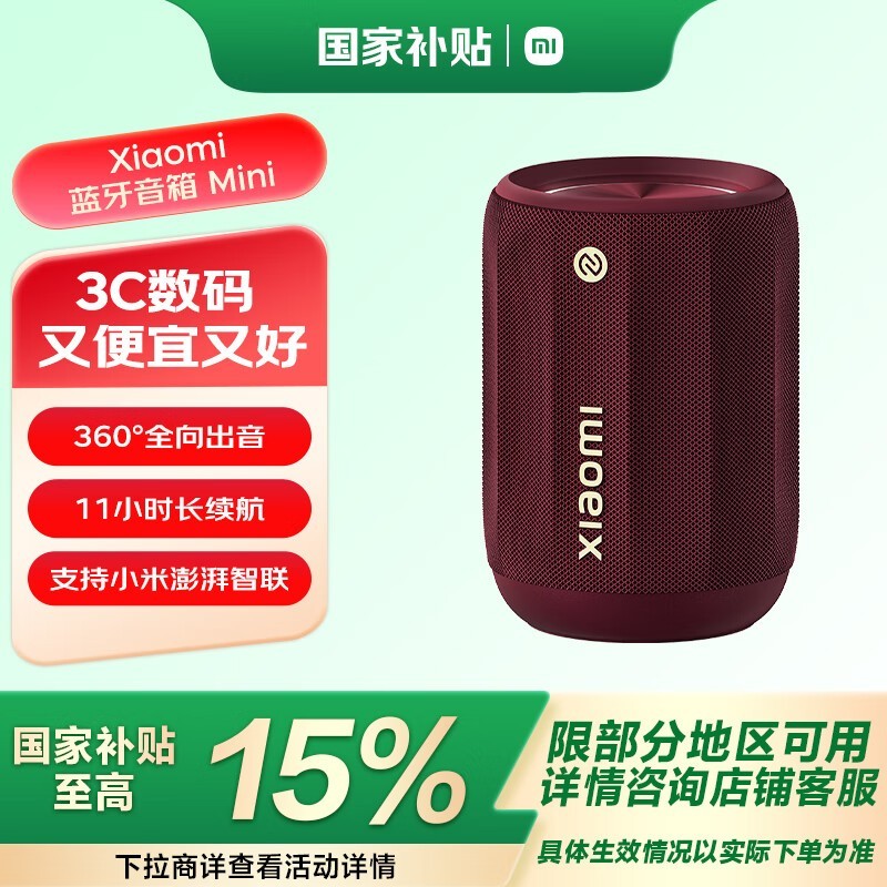 小米Xiaomi ASM01A蓝牙音箱Mini勃艮第红震撼音效享好价