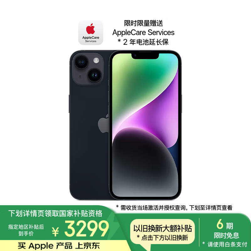 iPhone 14 128GB午夜色现售3279元(原价4348元)