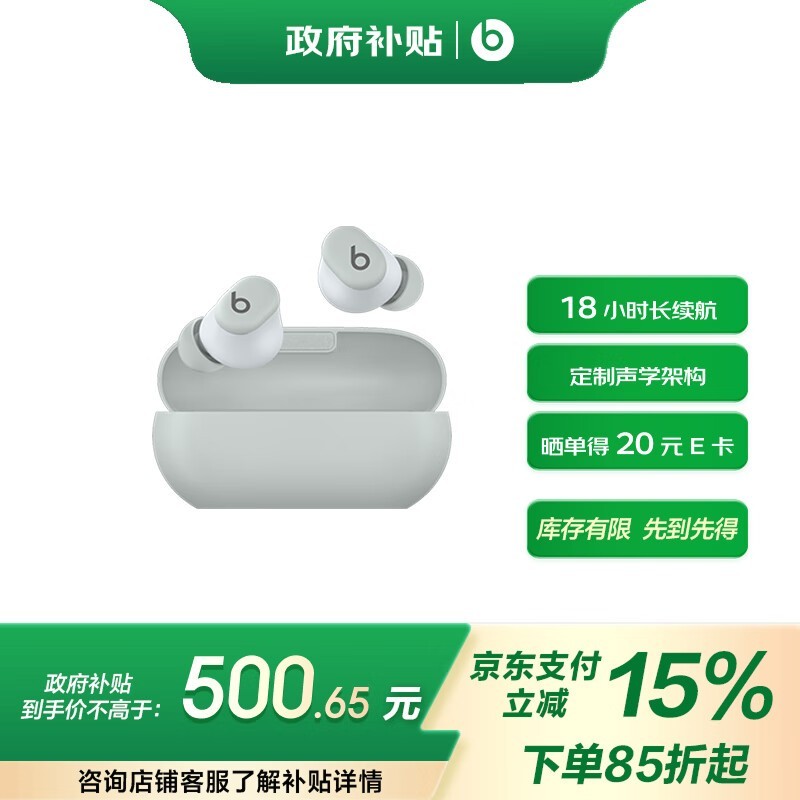Beats Solo Buds真无线耳机风云灰款促销中到手价446元享长续航