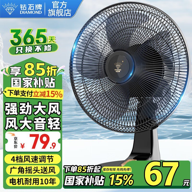 京东优惠:钻石牌台式风扇,清凉一夏仅需67.91元