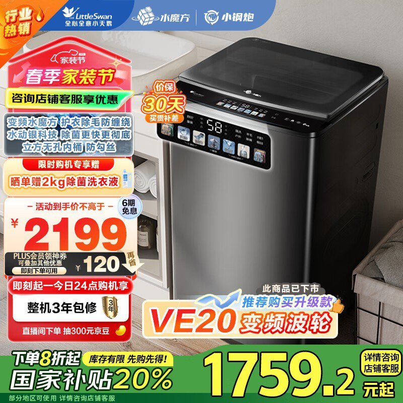 小天鹅水魔方TB100V83PLUS波轮洗衣机优惠价1312元