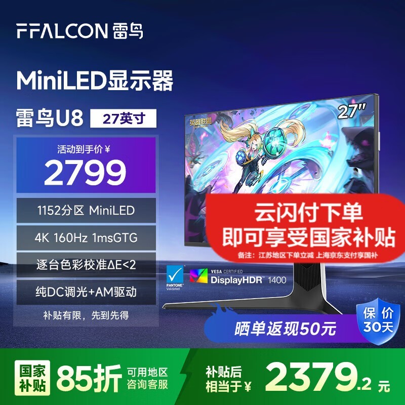 雷鸟U8 2025 27英寸显示器京东促销优惠多