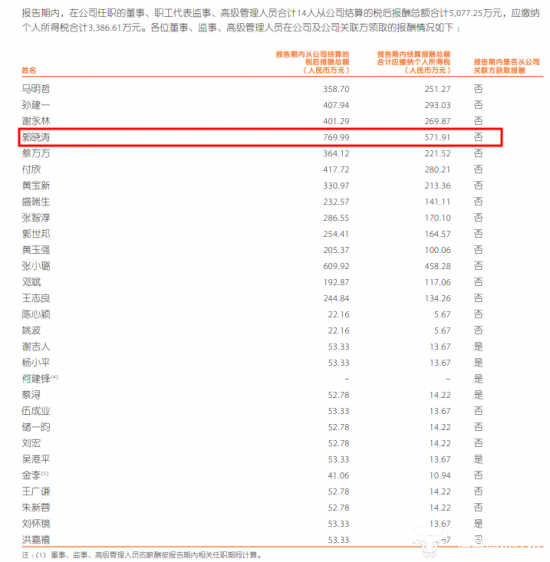 据平安保险于3月20日发布的2024年年度报告显示,郭晓涛在2024年获得的税后报酬为769.99万元,应缴个人所得税为571.91万元。由此推算,郭晓涛2024年税前报酬为1341.9万元,是总经理谢永林税前报酬671.16万元的近两倍,是公司高管团队中最高的。