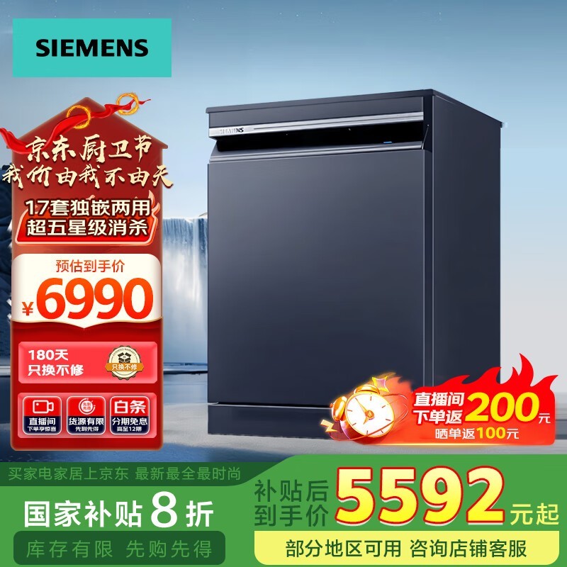西门子SIEMENS17套家用大容量洗碗机SN23HL25MC+蓝色门板促销