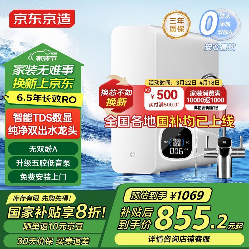 京东京造白犀800G2.0净水器超值优惠