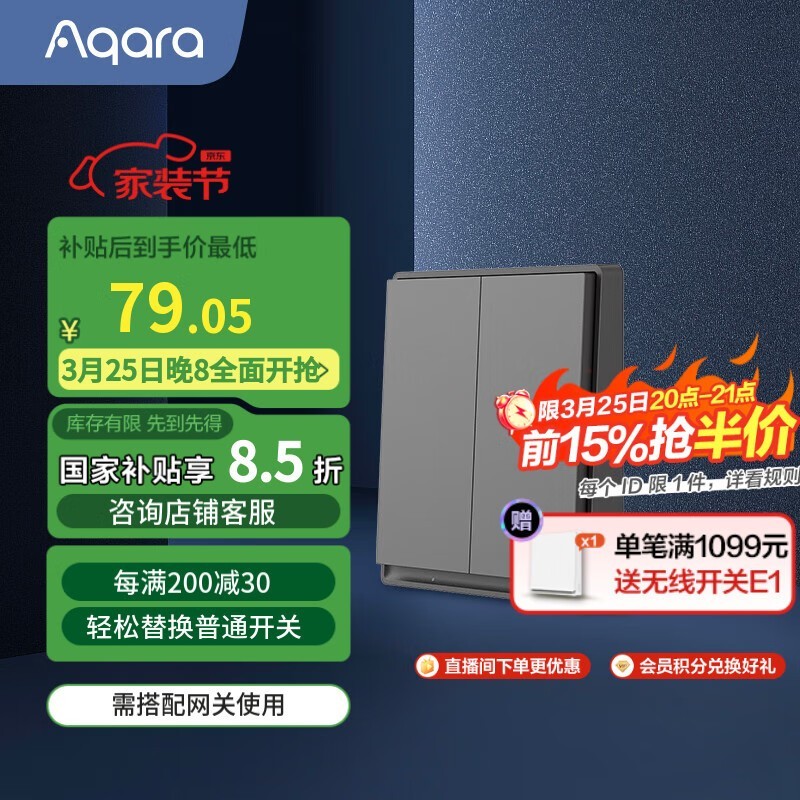 Aqara智能开关E1双键版远山灰促销信息
