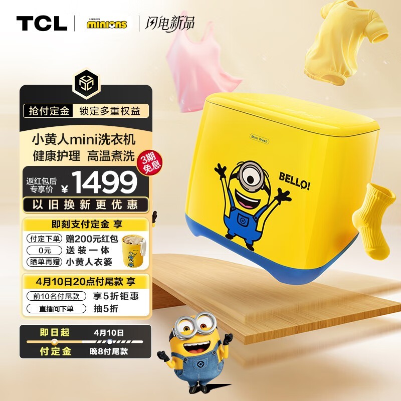 TCL小黄人洗衣机1KG迷你波轮宝宝衣物专用仅1319元