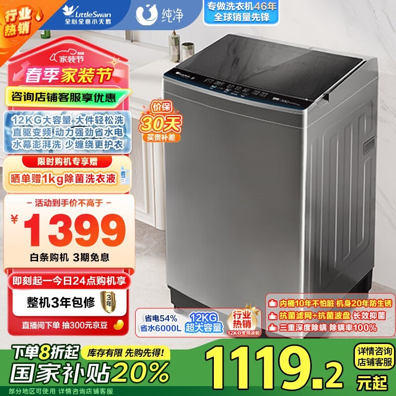 小天鹅12KG波轮洗衣机 京东优惠后946元