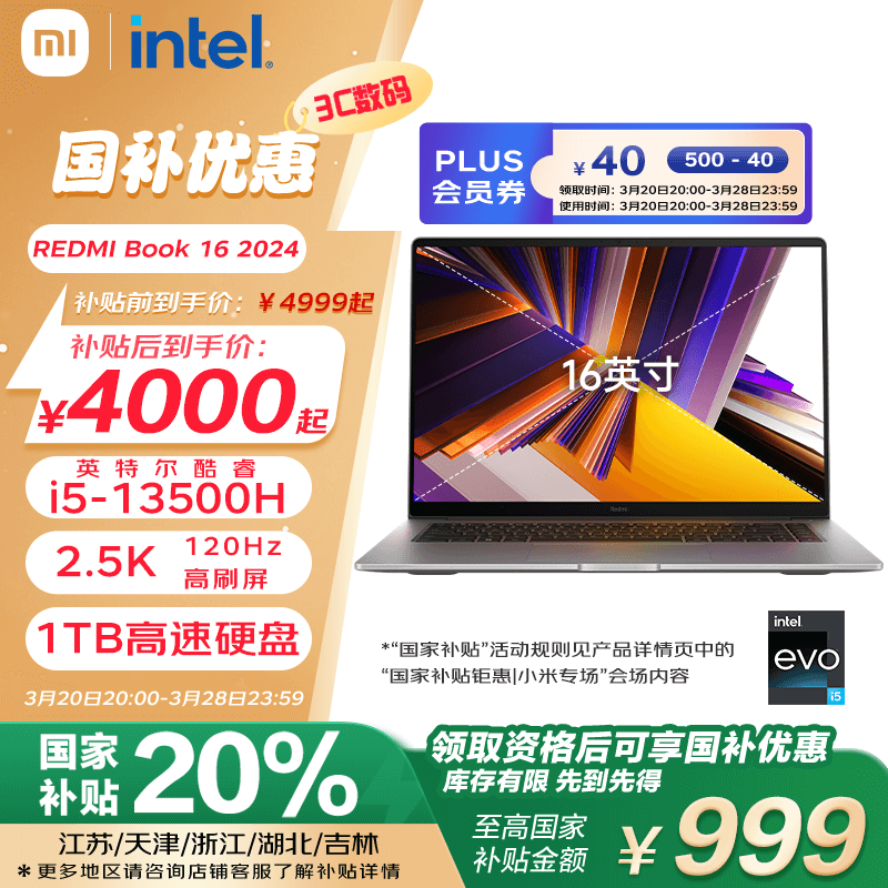 Redmi Book 16 2024款笔记本电脑 i5-13500H 处理器 16GB内存