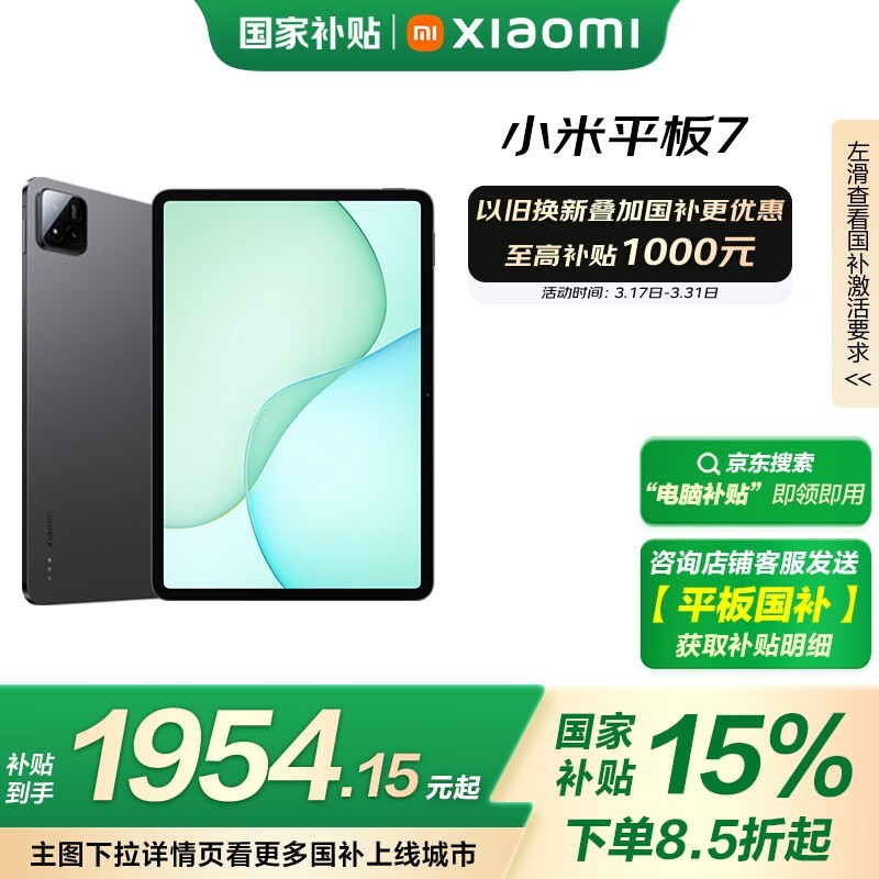 小米Xiaomi平板7 WiFi版优惠价1920元