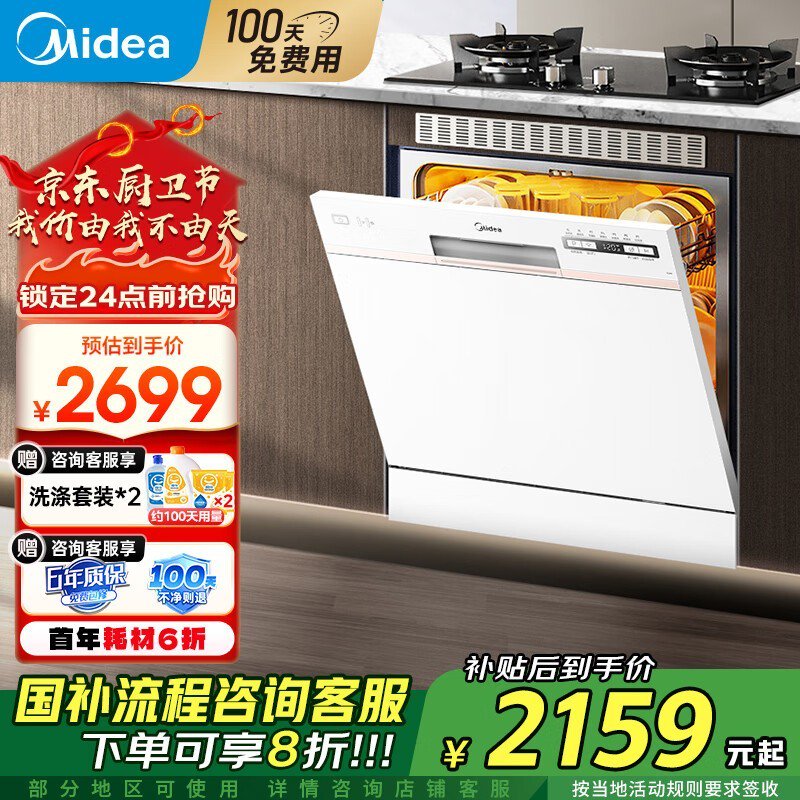 美的AQ80S嵌入式洗碗机10套 白色 会员到手2118元