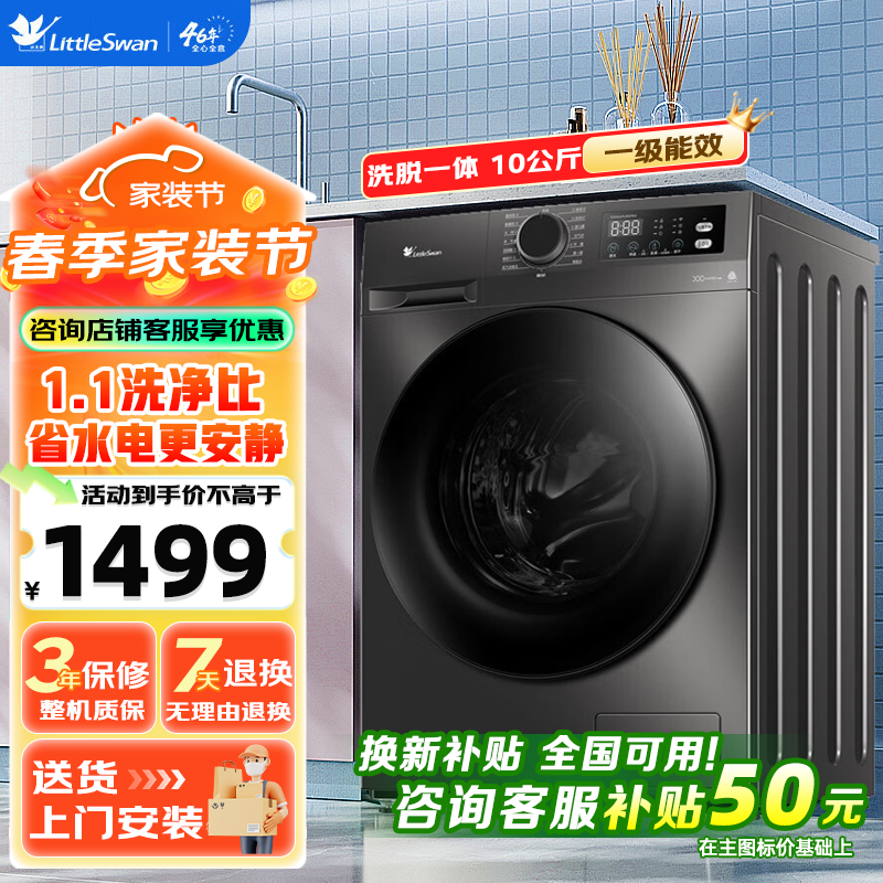 小天鹅10kg滚筒洗衣机,直播间专价低至1029元