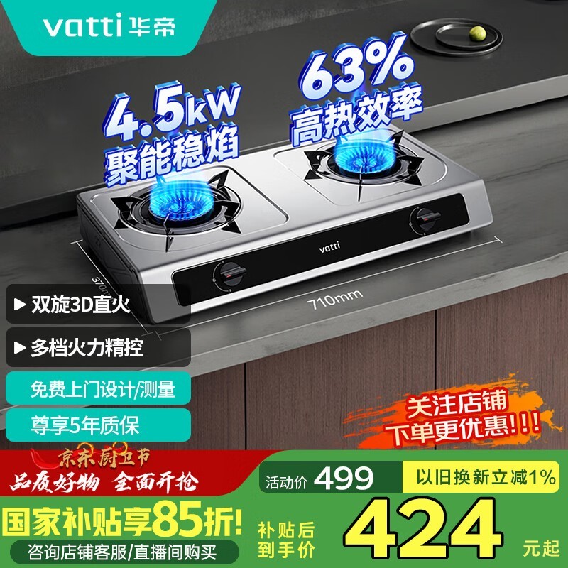 华帝家用不锈钢台式燃气灶液化气专用强劲猛火