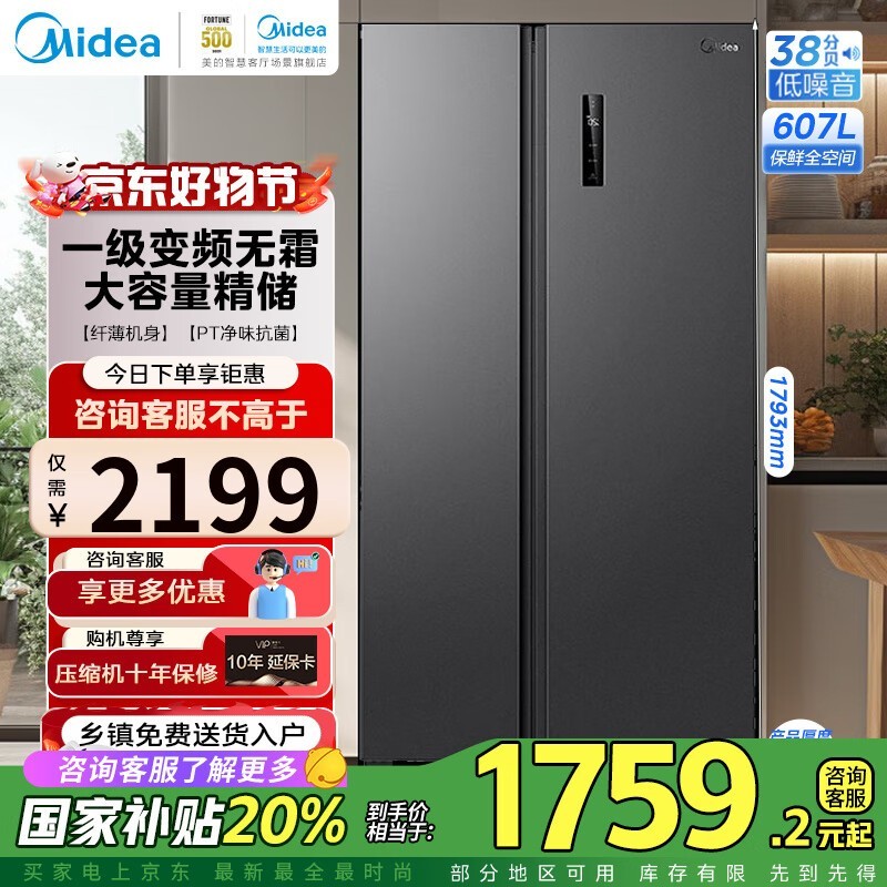 美的607L对开门冰箱一周食材新鲜存储仅1719元包安装