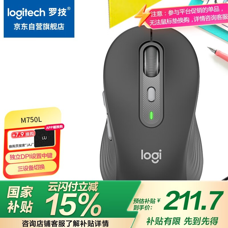罗技Logitech M750 L蓝牙无线鼠标高性能多设备办公鼠标