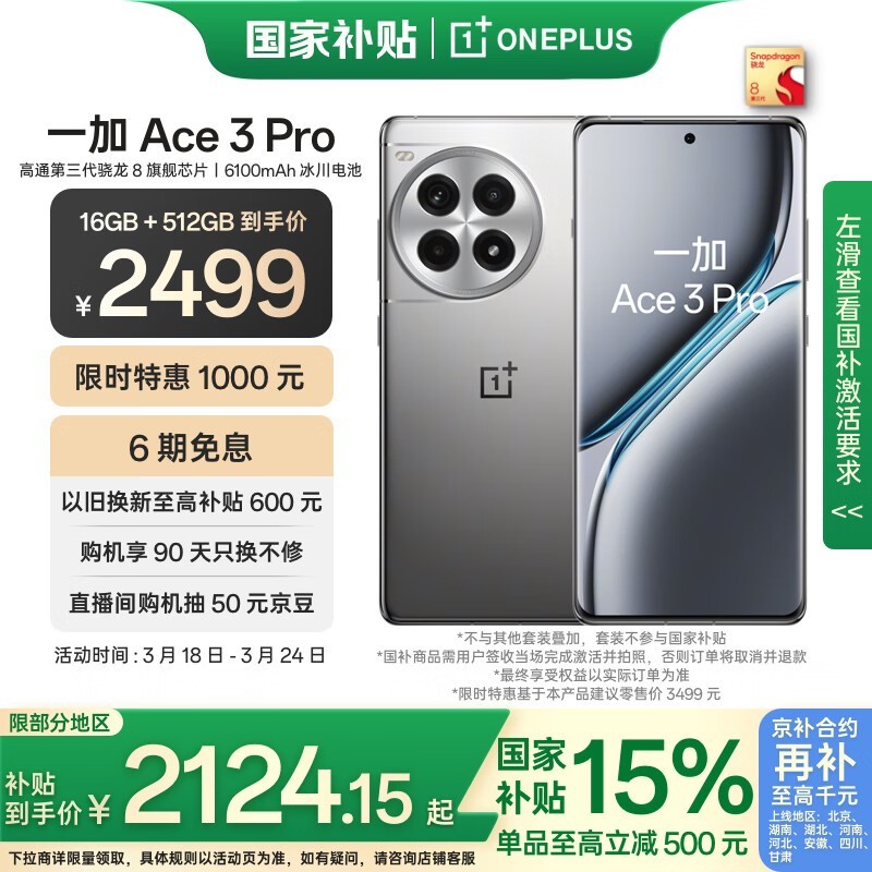 一加Ace 3 Pro手机京东活动价低至1997元